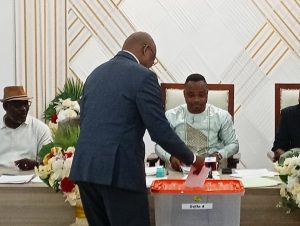 Après quelques instants d’attente, le préfet du Golfe censé présider la rencontre, Kossivi Agbodan fit son entrée dans la salle. Débutèrent alors les travaux avec le mot introductif du Secrétaire Général de la préfecture, puis le discours de circonstance du préfet lui-même précisant le contexte, la base légale de la séance, la procédure à suivre et appelant à la discipline au cours des travaux. S’ensuit le contrôle de présence donnant vingt et un (21) conseillers présents sur les vingt-trois (23) en tout. Le bureau d’âge composé du plus âgé et du plus jeune des conseillers devant conduire le processus de l’élection du maire et ses quatre adjoints est mis en place. Mais la tâche n’était pas facile. Etant candidats aux postes de maire et/ou d’adjoints, cinq (5) conseillers successifs se sont désistés et il a fallu que l’un, Jacques Amouzouvi (ANC) notamment se propose, en binôme avec le moins âgé des conseillers, Rachid Péréira Stanislas, pour permettre de le constituer.